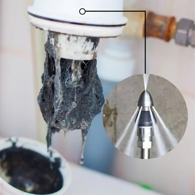 Потужний направлений струмінь під високим тиском розбиває жир, бруд, пісок та накип навіть у глибоких ділянках труби. Ви отримуєте результат вже з першого використання.