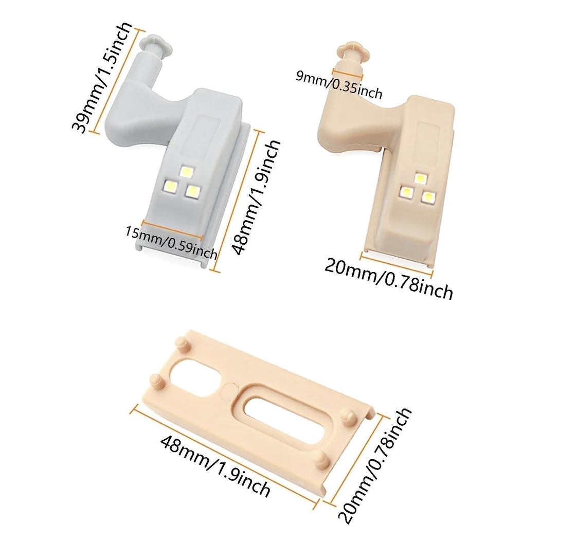 Цей розумний світильник автоматично вимикається, коли ви зачиняєте шафи. Виготовлений з високоякісного ABS пластику, він не додає ваги і не пошкоджує петлі. Він також живиться від легко замінної 12-вольтової батареї на 23 А.