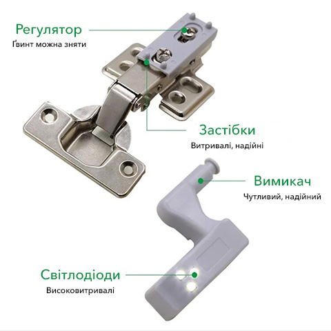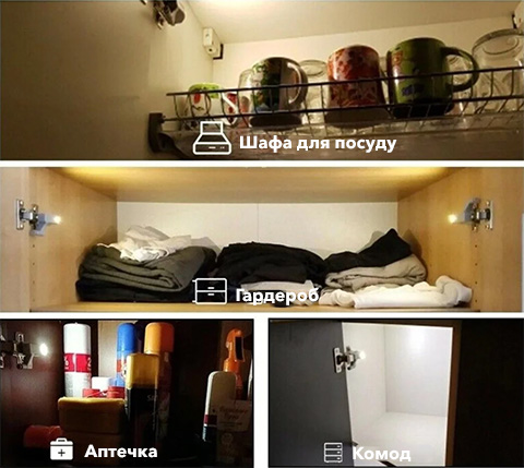 Світло автоматично вмикається при відкритті шафи, і вимикається при закритті шафи, вам не потрібно брати ліхтарик, коли ви шукаєте щось у шафі.
